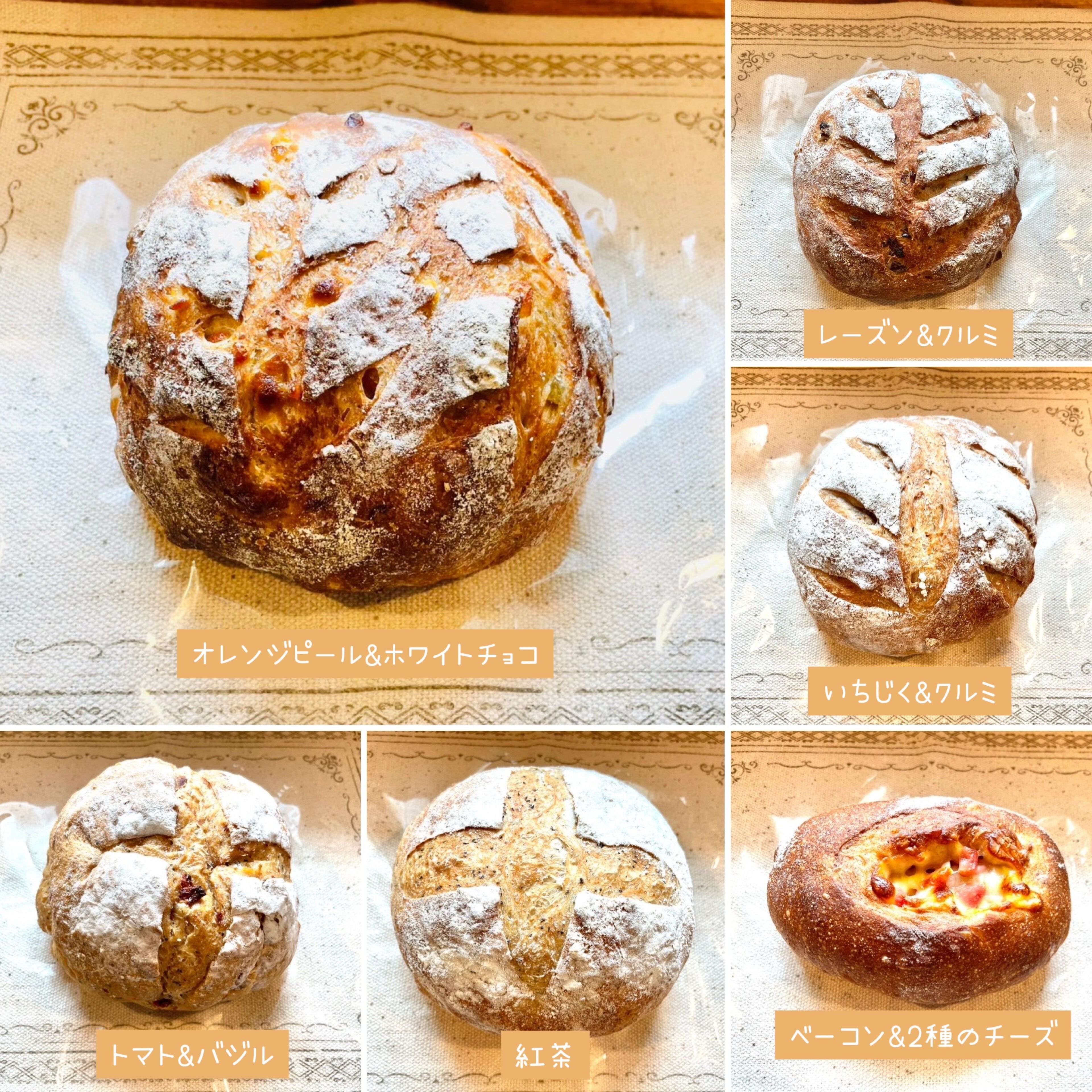 小麦粉(国内製造)、クルミ、いちじく、全粒粉、ライ麦粉、はちみつ、食塩、パン酵母/乳化剤(ソルビタン脂肪酸エステル)、V.C、(一部に小麦、クルミを含む)